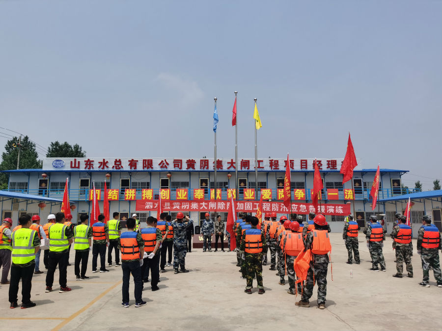 5月15日上午,山东水总有限公司泗水县泗河黄阴集大闸除险加固工程1标项目经理部联合泗水县水务局、泗水县应急局、泗水县防汛指挥部等单位开展了黄阴集大闸除险加固工程防汛应急救援演练。本次模拟演练设置坝前坍塌抢护、坝后管涌抢护、增高子堰抢护、坝后渗水面抢护、紧急心肺复苏救援5个演练场景。