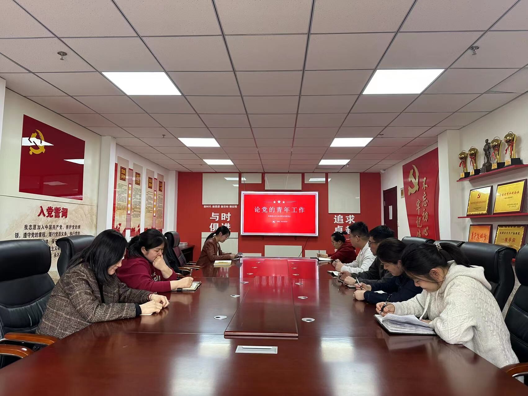 3月6日下午,第一分公司青年理论学习小组在二楼党员活动室开展集中学习,学习了《论党的青年工作》。青年职工们深入交流互动,畅谈坚定不移听党话、跟党走的青春历程,深刻感受到共青团在党的领导下、团结带领一代代团员青年为实现中华民族伟大复兴中国梦作出的重要贡献。