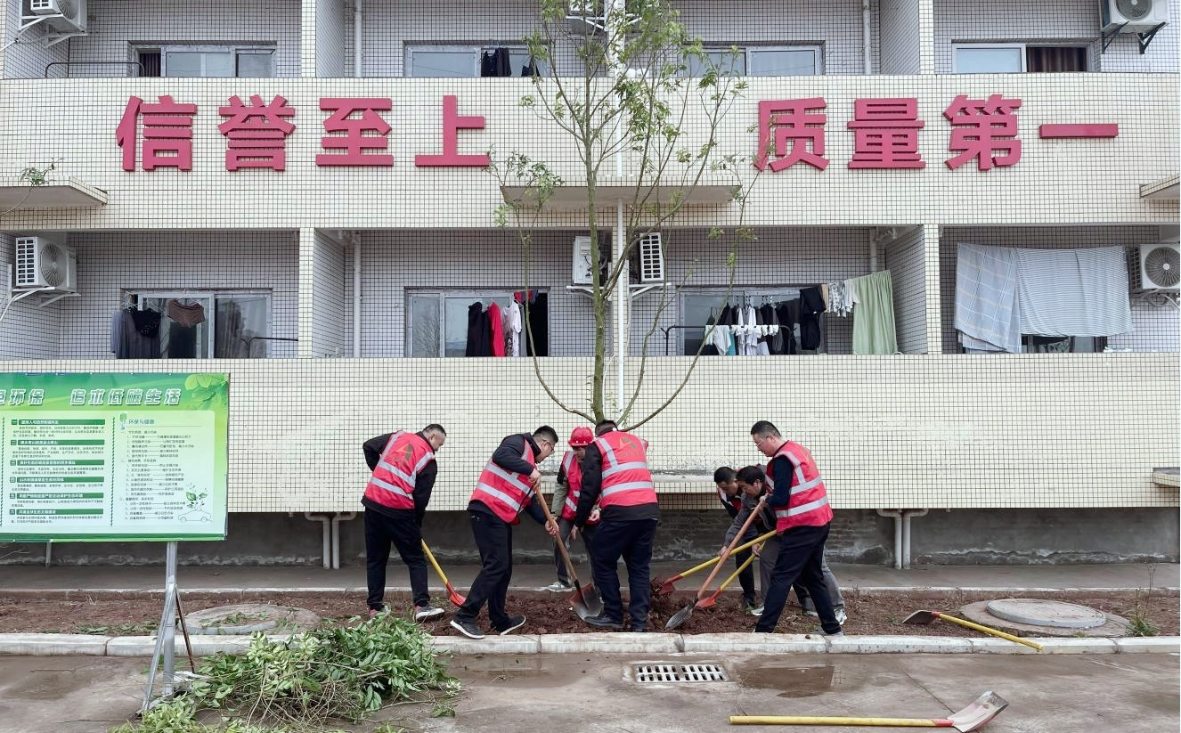活动现场,项目部党员充分发挥先锋模范作用,身先士卒搬运树苗,团员青年们也个个热情高涨、干劲十足。大家分工明确,互相协作,一挖一铲,一挥一种,精心栽培,用心浇灌,践行了“绿水青山就是金山银山”的理念,美化了项目驻地,营造了绿色舒适的工作生活环境,展现了企业良好形象。